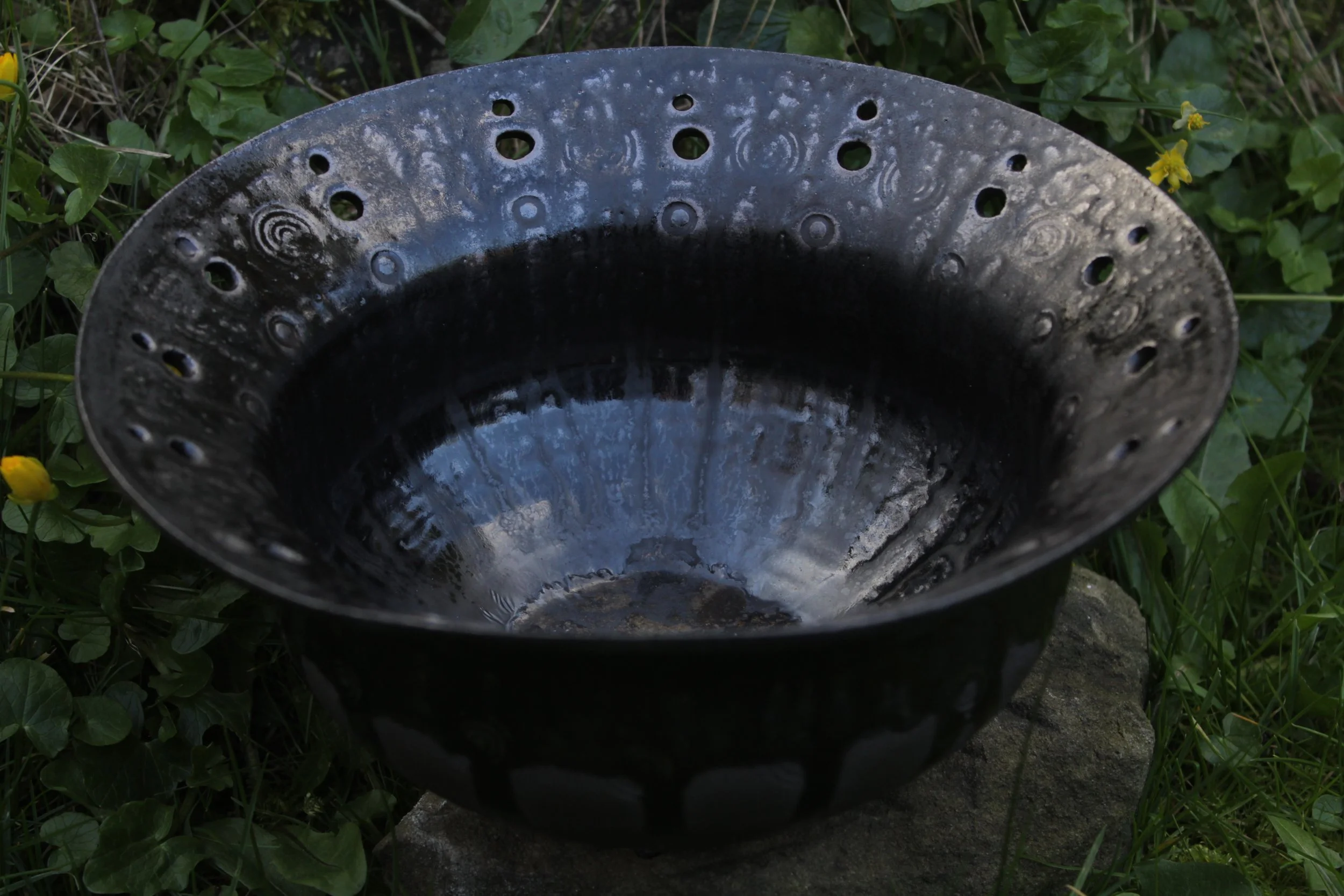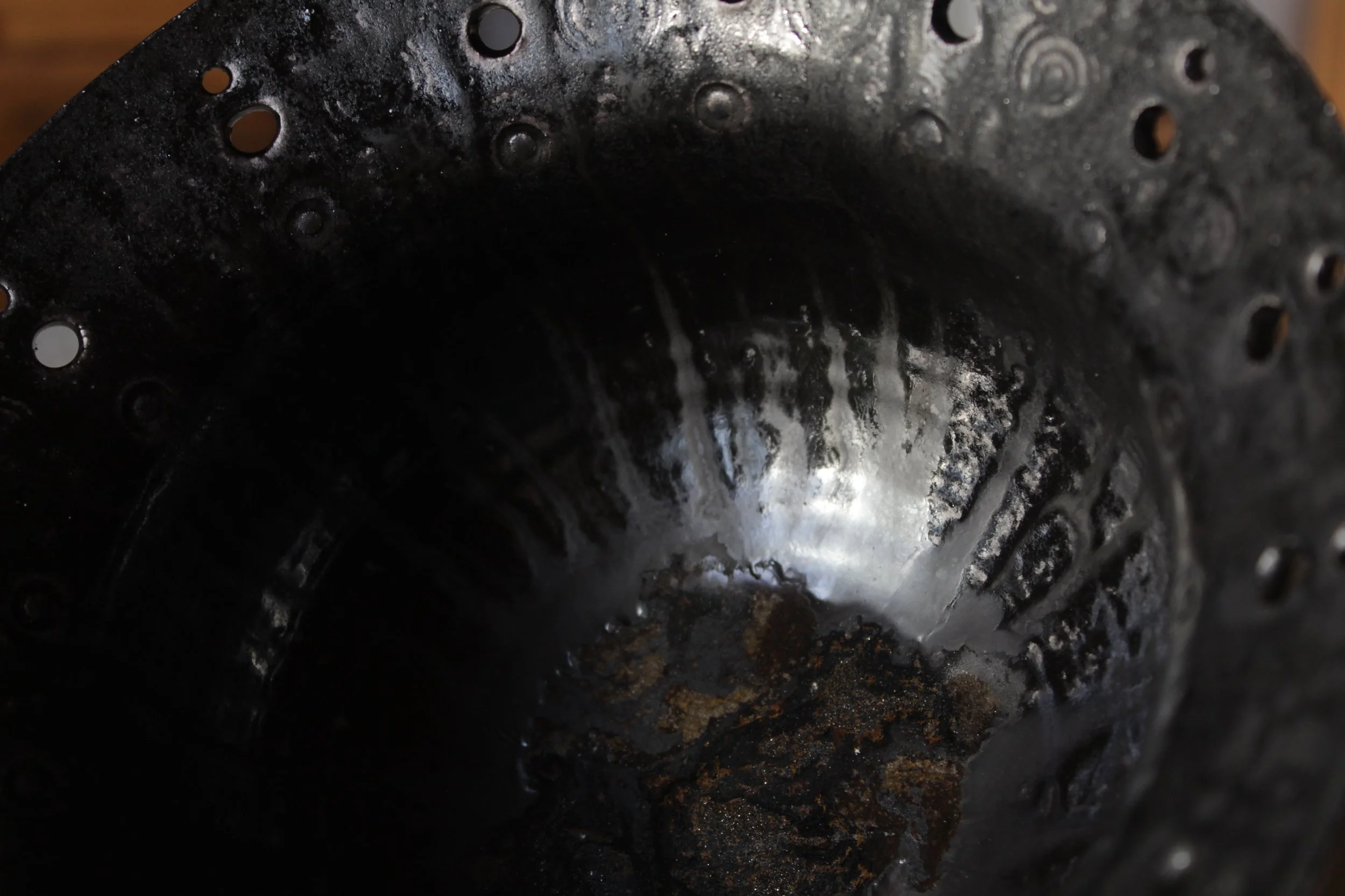 ∵∴∵Ash glazed black stoneware form, made using mixed unwashed woodash. British and Irish neolithic decorative patterns∵∴∵